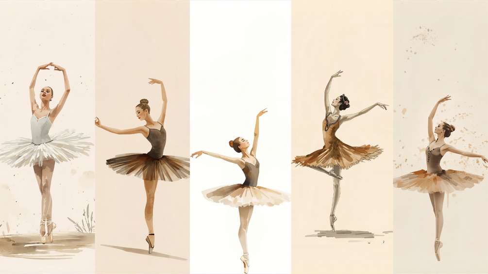 - 5 Unique Images: A collection of ballerinas in a graceful watercolor style.